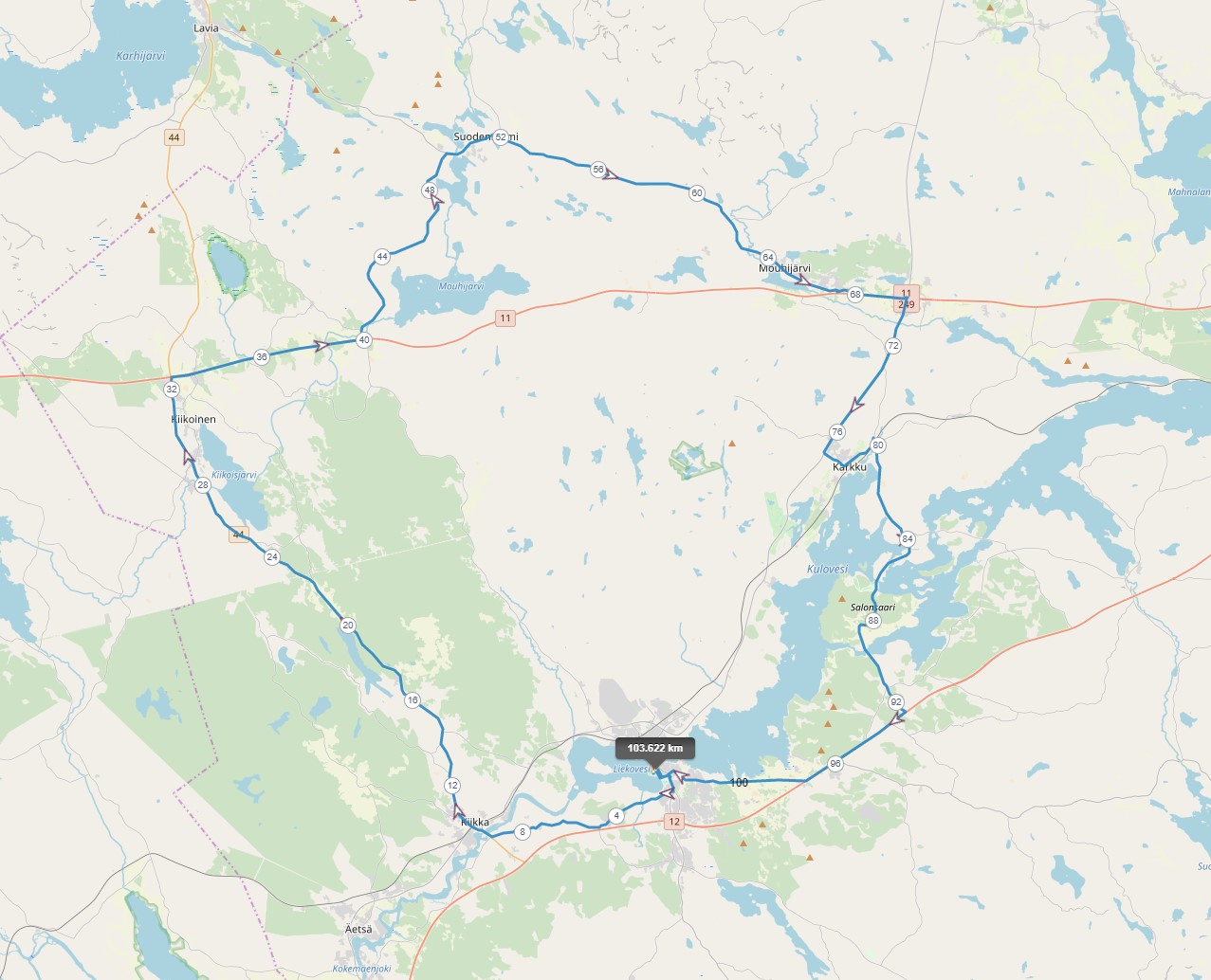 Erittäin monipuolinen reitti ja 4 tuntia sen ajamiseen meni.