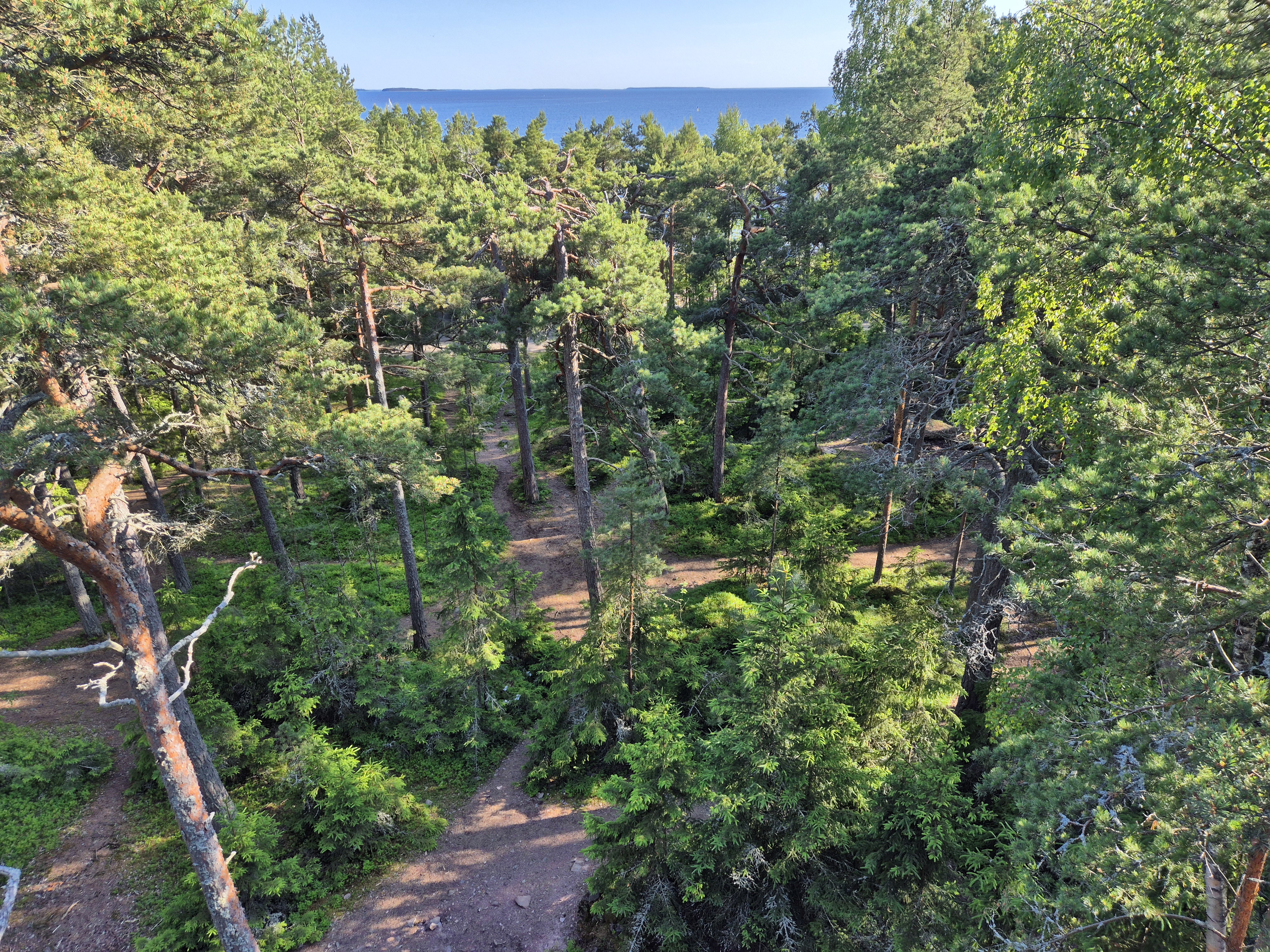 Reposaaren linnakepuiston näkötornista näkymää merelle