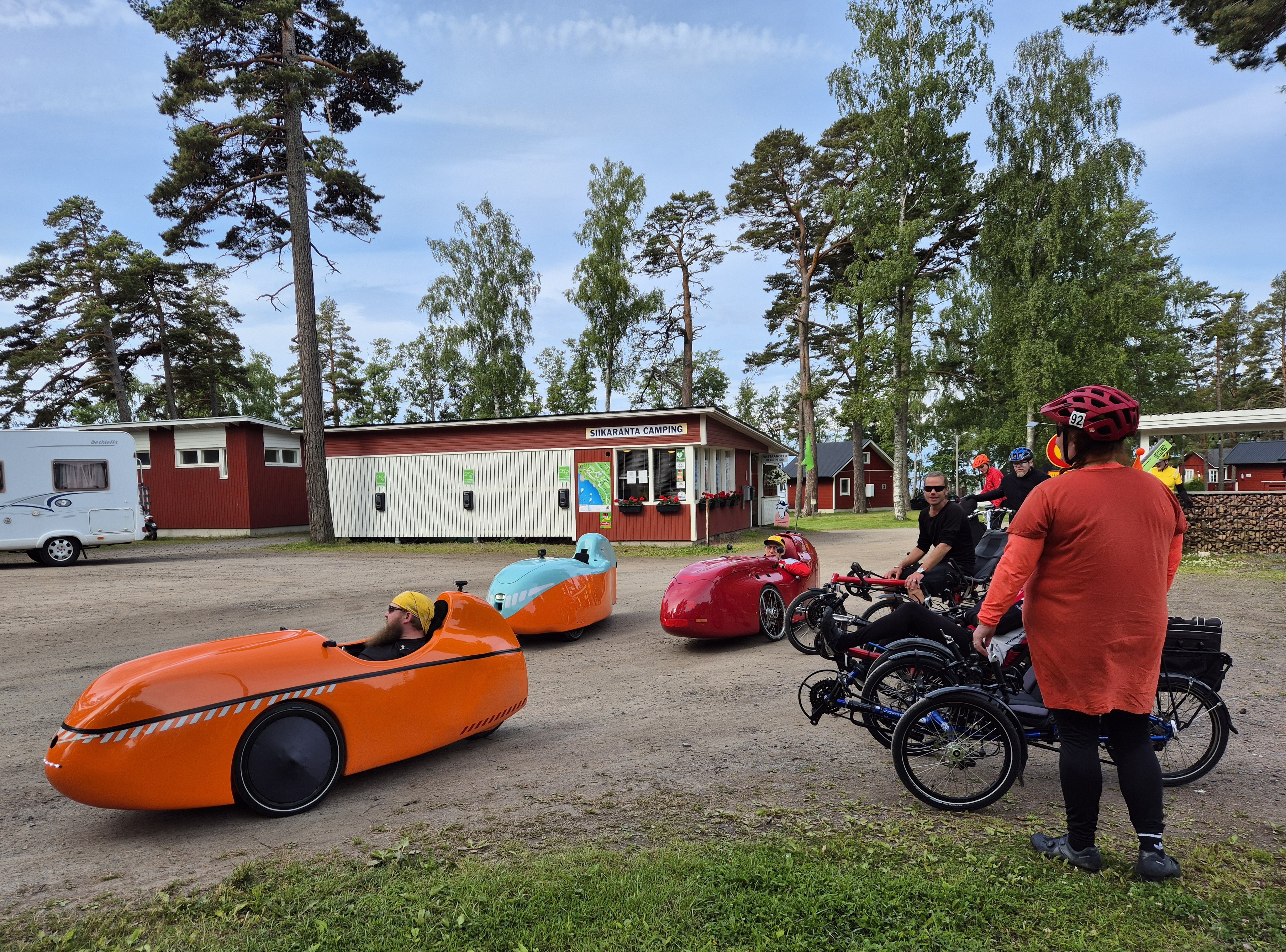 Alkunousun jälkeen reitti oli todella ajettavaa velomobiilille ja pyörä tuntui kulkevan kevyesti. En sitten malttanut ajaa hiljaa. Puolimatkan paikkeilla alkoi jo tulla vastaan numeroilla 2000-3000 lähteneitä. Matkalla kolmella huoltopisteellä tuli poikettua ja nautittua banaania, mustikkakeitto, suklaata, spisejä, suolakurkkuja ja urheilujuomaa.