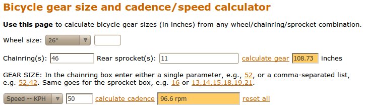 Tuolta löytyy kuvan mukainen laskin. http://www.machars.net/bikecalc.htm