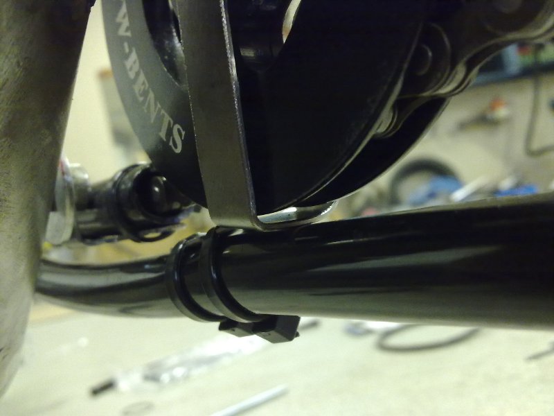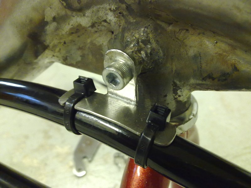 Taas pientä edistystä. Tekaisin ketjuputkien kiinnikeraudat ja mallailin niitä paikalleen. Leikkelin raudat tuosta takahaarukassa käytetyn putken kyljestä, ovat kohtuu pehmeätä 1,5mm terästä.