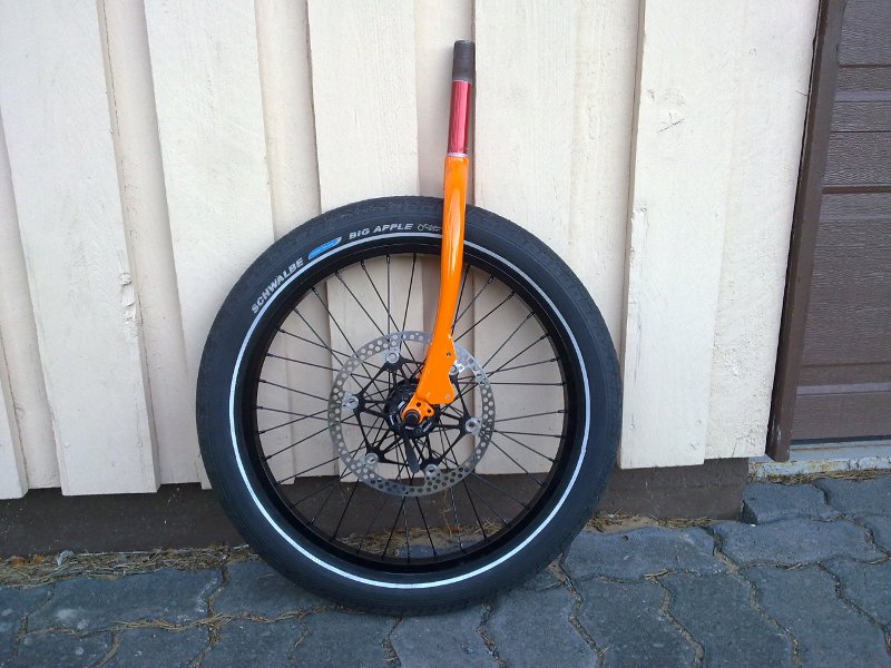 Yllätävänkin nätisti passaa 26" etulokari 20" renkaan päälle...