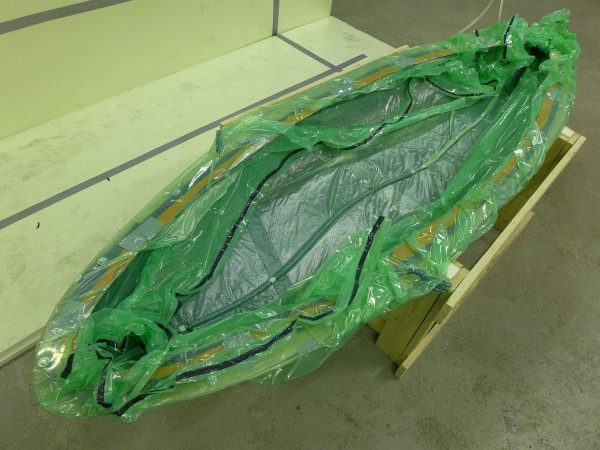 Korin alaosaan laminoitiin kolme hiilikuitukerrosta, ja muotista irrotetun kappaleen painoksi punnittiin hieman vajaat 4 kg. Ammemainen vetelä muoto kaipaa vielä jäykisteitä sinne ja tänne, ennen kuin siitä tulee käyttökelpoinen alusta tekniikalle (etu- ja takapään apurungot, penkki etc.). Näitä hierotaan kohdilleen kunhan niiden aika tulee.