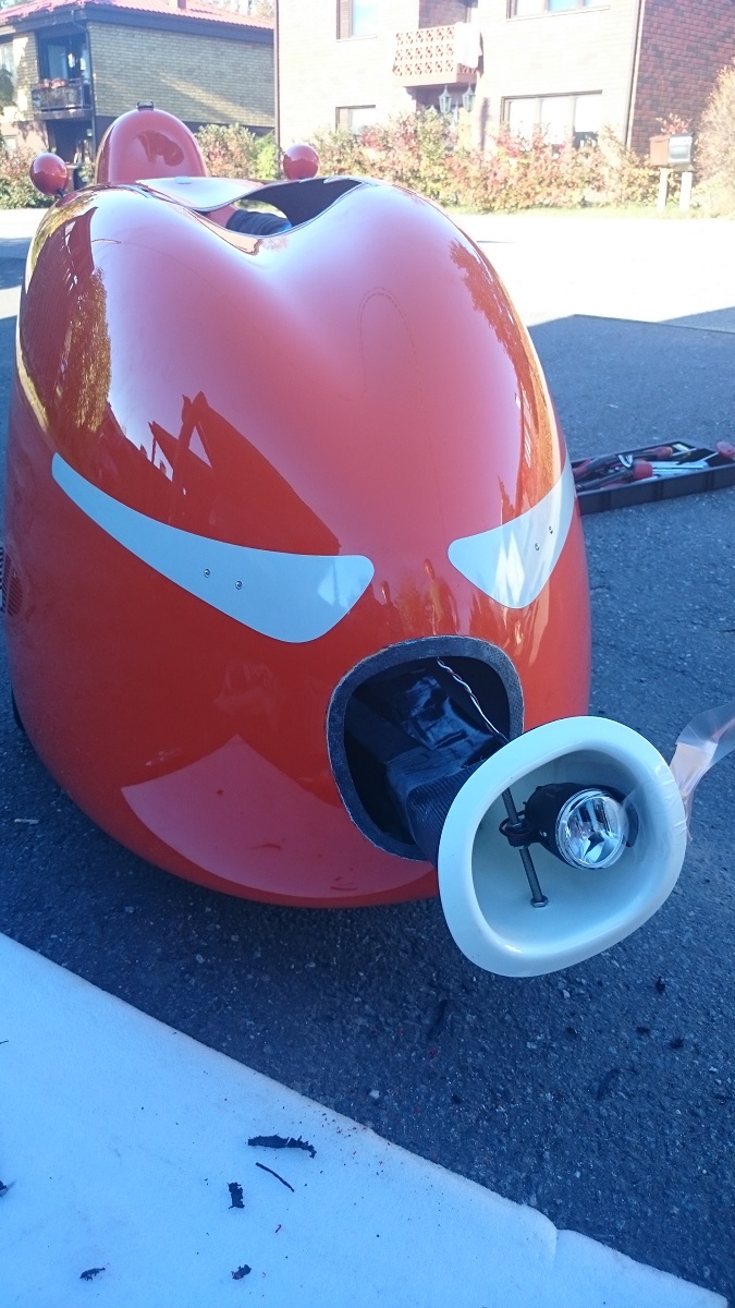 No mutta sitten asiaa tästä matkan pääasiallisesta tarkoituksesta, elikäs DF:n näkemisestä ja koeajosta. Lauantai aamuna sitten ihmeteltiin DF:ää oikein perin pohjin ja käytiin me ajelullakin yhdessä niin että minä ajoin DF:ää ja velonautti Stradaa. Ennakkoon sitä tietysti ihmetteli että kuinka sinne DF XL:ään mahtuu kun se niin kapealta kuvissa näytti. Hämmentävän hyvin sitä tilaa kuitenkin oli. Ajamiseen tarvittava tila oli varsin samaa luokkaa kuin Stradassakin. Mutta kaikki muu ns. turha tila oli sitten minimoitu. Kulkuaukko oli todella pieni, sen sujuva käyttäminen vaatii kyllä harjoittelua (tosin kyllähän se Stradaan pääseminenkin vaikutti hankalalta aluksi ennen kuin liikerata tuli tutuksi). Ajoasento oli hieman makaavampi kuin Stradassa, vaikka oli niin pystyyn säädetty kuin säädöt mahdollisti. Penkki oli ihan hyvän tuntuinen, tosin jotenkin siinä liukui helposti liian alas. No ei me velonautin kanssa ihan saman kokoisia olla, joten eihän ajoasento itselle tietenkään ihan juuri sopiva ollut. Kampia olisin kaivannut hieman kauemmaksi. Ja kyllähän ne 155 mm kammet jotenkin oudon lyhyiltä tuntui vaikka eroa omiin 165 mm kampii ei nyt niin paljoa ole. Onneksi vaikutti kuitenkin siltä että kyllä minun pitäisi 165 mm kammillakin pystyä DF XL:llä ajamaan, sen verran tuntui olevan pelivaraa joka suunnassa ennen kuin olisi kengät/jalat kiinni ottanut.