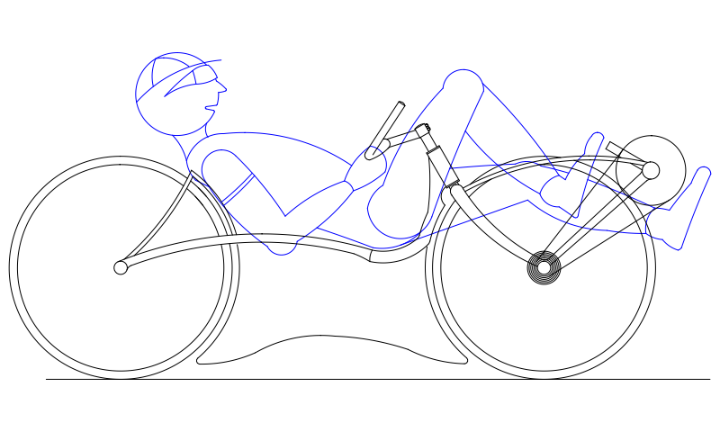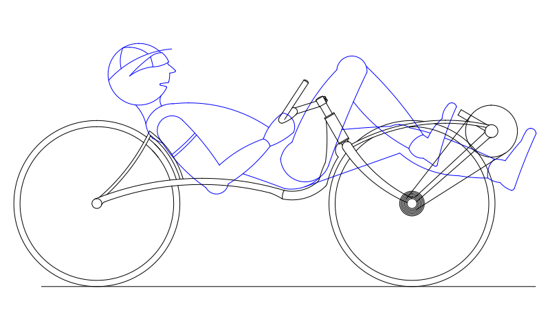 Aika lähellä taitaa geometrialtaan olla Marzien nojakkia, paitsi keulan yhdysputken rakenne erilainen. Piirtäessäni ajatus oli, että romupyöristä otetaan sellaisenaan käyttöön chain-stay ja keskiö -kokonaisuus ja varmaankin emäputki. Muut valmistetaan metallisella käsityötaidolla priimana.