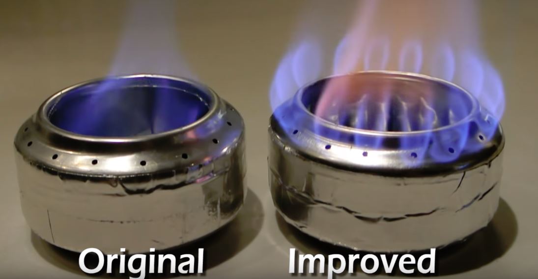 Tuosta kuvasta näkee ettei Original toimi niinkuin on tarkoitus. Siinä palaa liekki keskikupissa, kun sen pitäisi palaa reunan reissä aivan kuten Improvedissä. Pieneltä näyttävä yksityiskohta, mutta se muuttaa koko polttimen toimintaperiaatteen