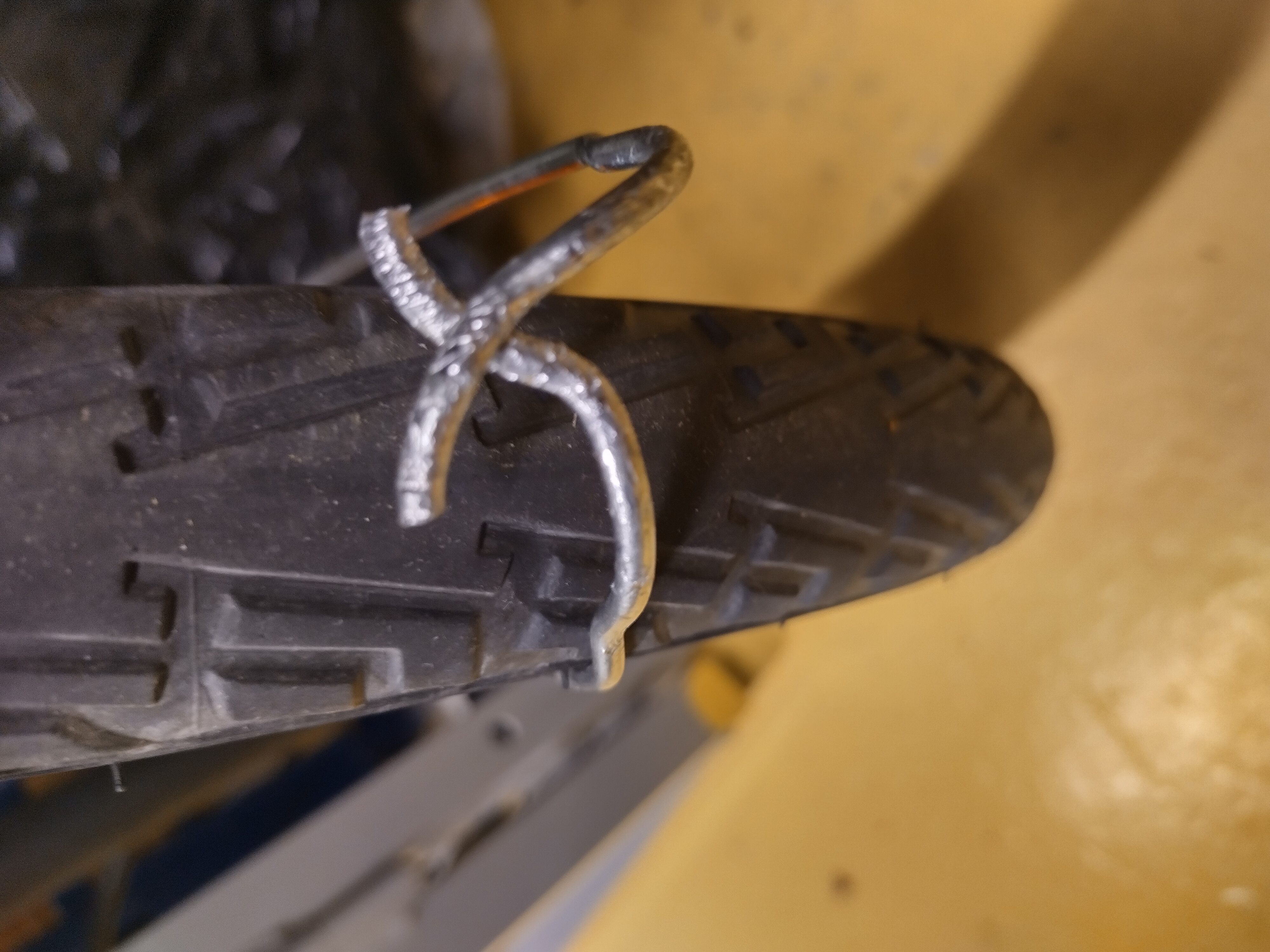 Pystyisikö katkennutta lokasuojan lankapidikettä hitsaamaan takaisin yhteen?