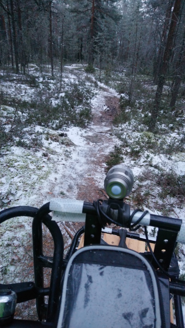 Kävin etsimässä maastopyöräreittejä tästä läheltä. Vähän matkaa niitä pystyi ajaa, mutta sitten joko polku loppui tai muuttui niin kiviseksi,