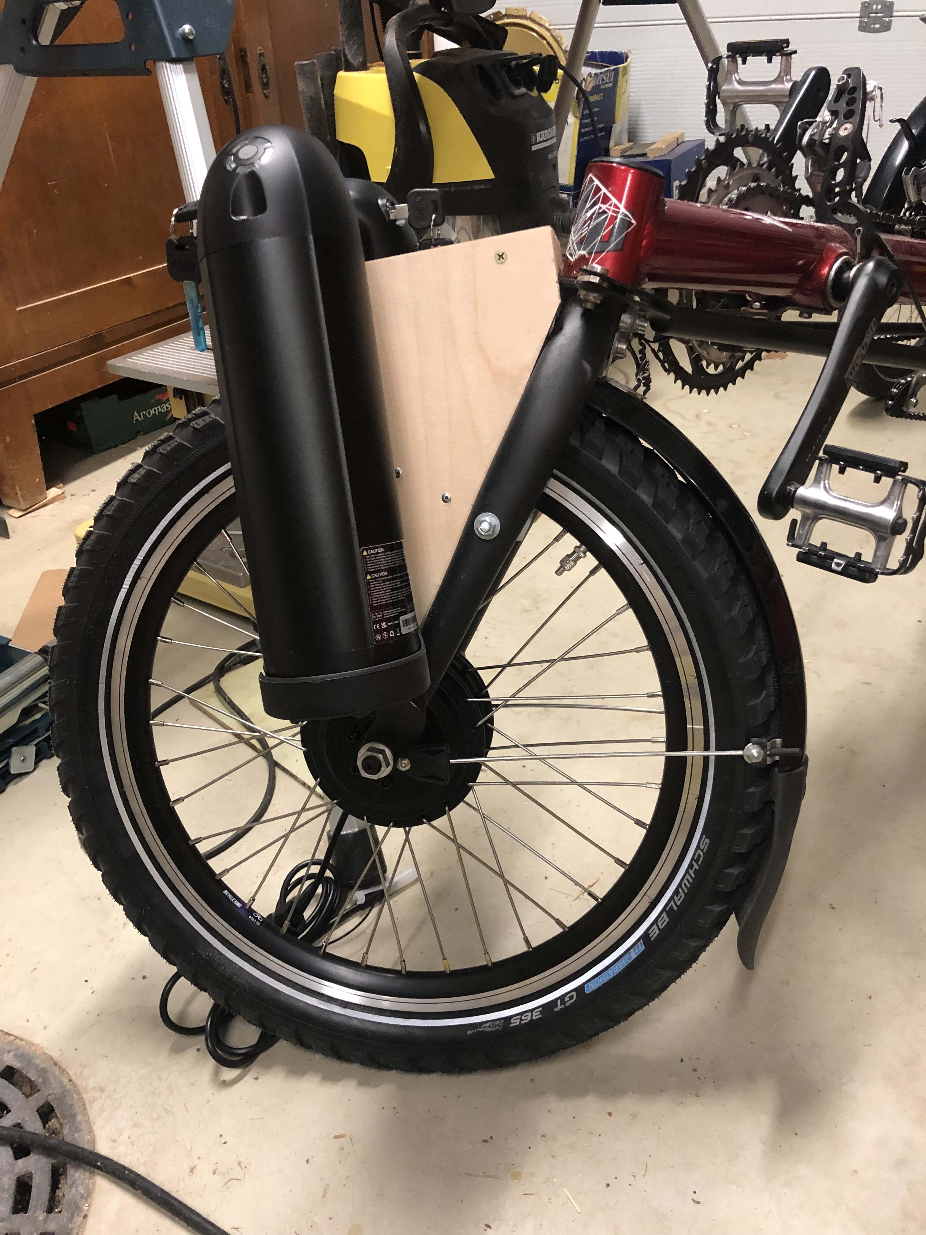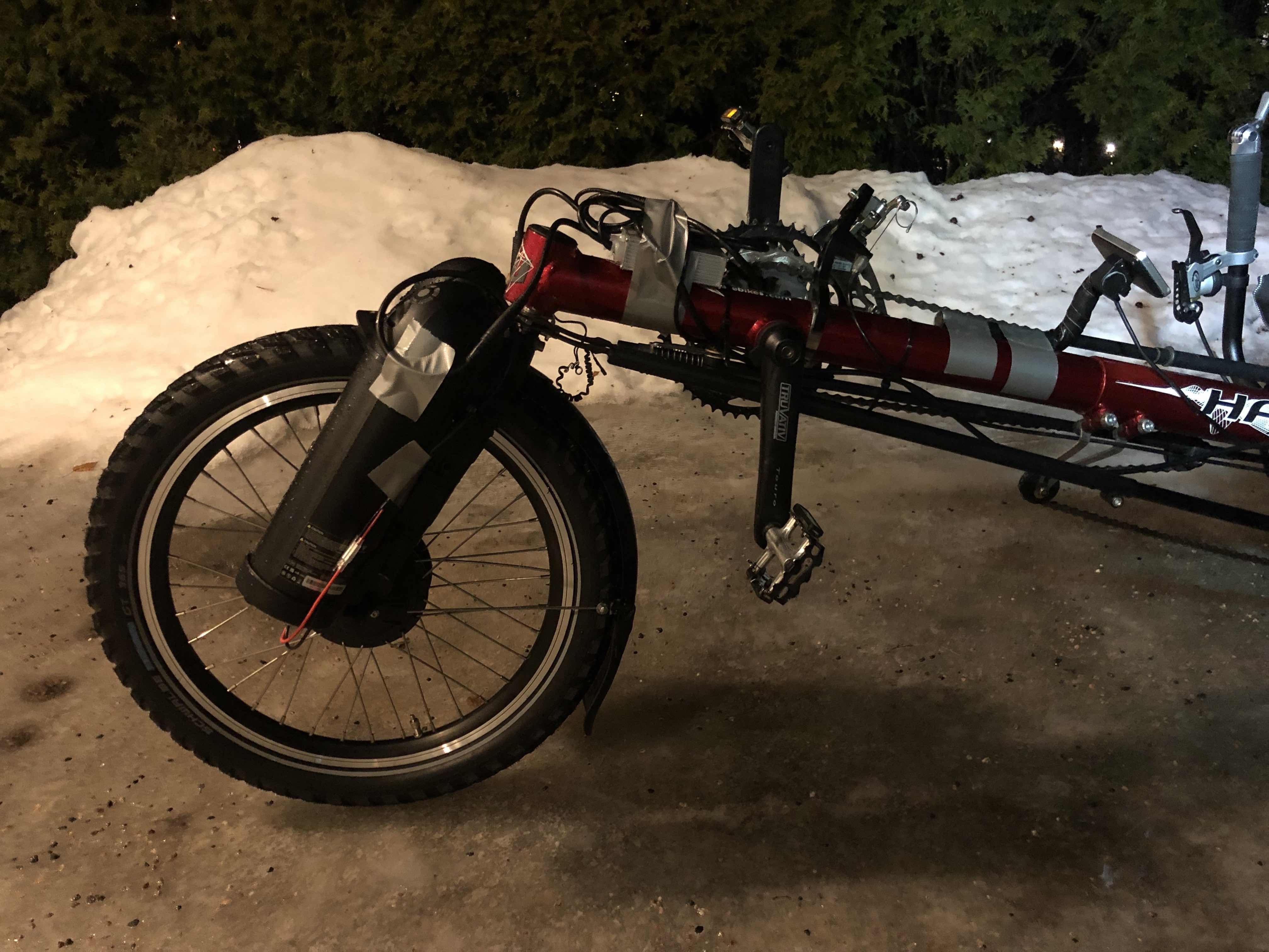 Kokeilin vielä laittaa akkujen kiinnikkeet etuhaarukkaan suoraan nippusiteillä ja gorilla teipillä.