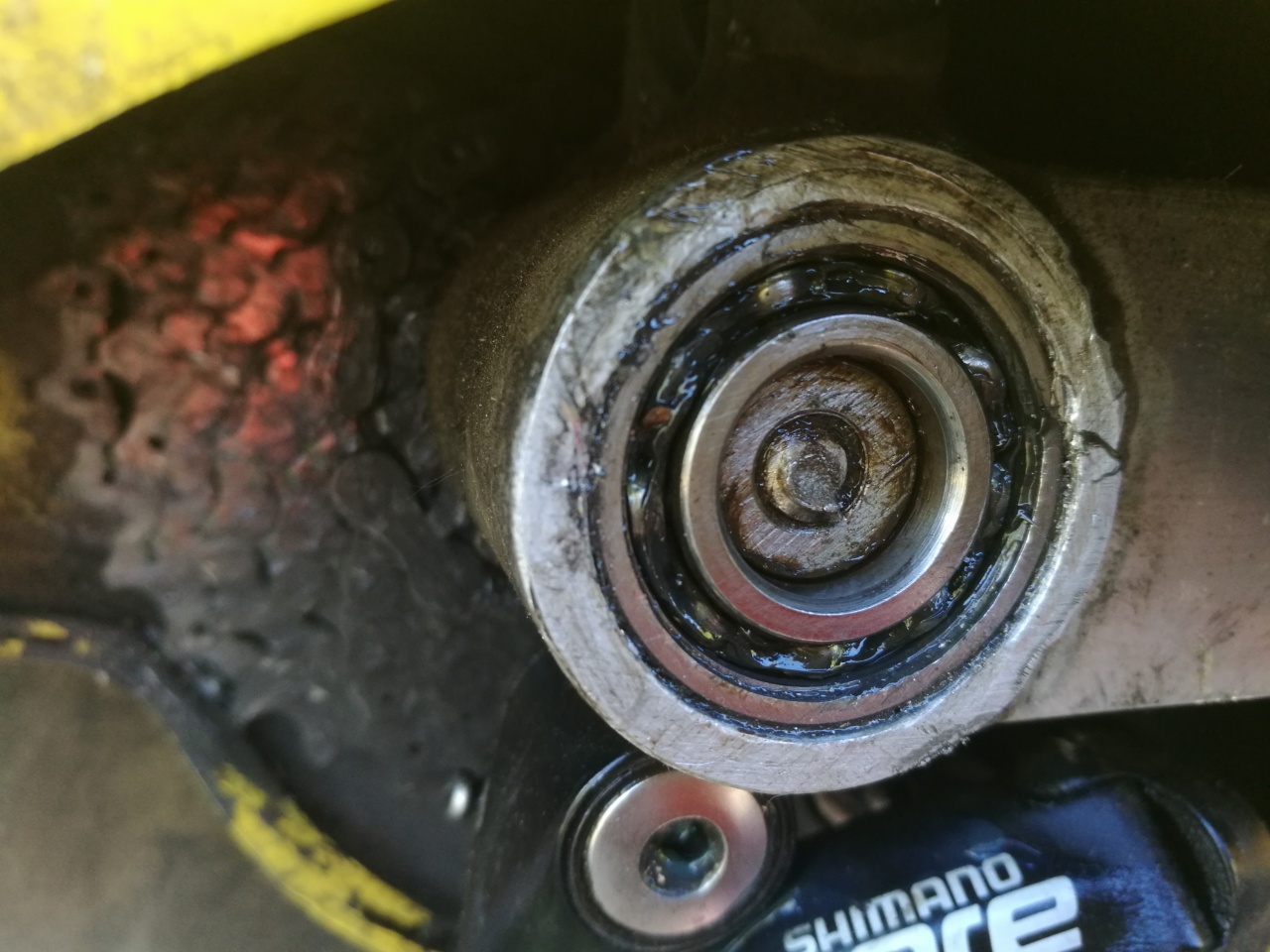 Ai se meni poikki se akselin M8 pää. Ok, mutta se ulkokooli olisi hyvä saada kuitenkin oikealle paikalleen sinne seegeriuran taakse, jotta laakeri on varmasti suorassa. Samalla kun naputat sen paikoilleen, tulee sinne rattaan ja sisemmän laakerin väliin tilaa ketjulle.