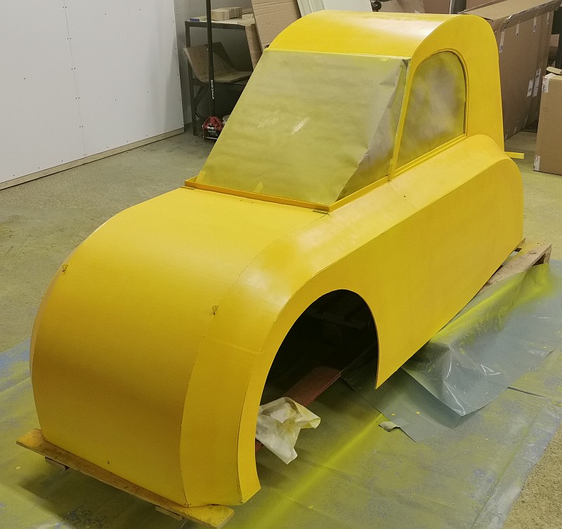 Tänään tuli kolme kerrosta lisää keltaista maalia, ja päälle kaksi kerrosta lakkaa.