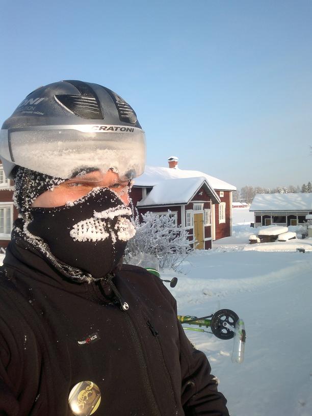 Esimerkkinä viimeisimmältä -26.6 asteiselta nojakkilenkiltä jossa kaksi huputettua naista laahusti pyörätietä samaan suuntaan, sitten toinen päätti pysähtyä keskelle risteystä arpomaan mihin suuntaan menisi, ja toinen vähän väisti sivulle lähtevän pyörätien suuntaan. Ei kuullut, ei tajunnut eikä siirtynyt joka teki kapeaksi auratulla pyörätiellä alamäessä ohittamisen lähes mahdottomaksi.