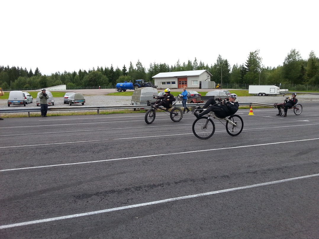 Jooseha nappasi kinnerin koeajoon mutta pahaksi onneksi tarvitsin sen vielä loppukuvaan niin illan koeajo jäi yhteen kierrokseen. Fiiliksiä vaihdettiin tavaroita pakatessa ja ihan tönkkö olo oli jaloissa, kuin pari puupökkelöä, ajokengät oli kiva riisua ja kävellä sukkasillaan. Kun kamat oli kasassa niin lähdettiin polkemaan Alisniemeen ja varikon mäki teki polvessa ja nilkassa todella kipeää. mutta kun sai alamäen alle niin aika haipakkaa painettiin pihaan saakka.