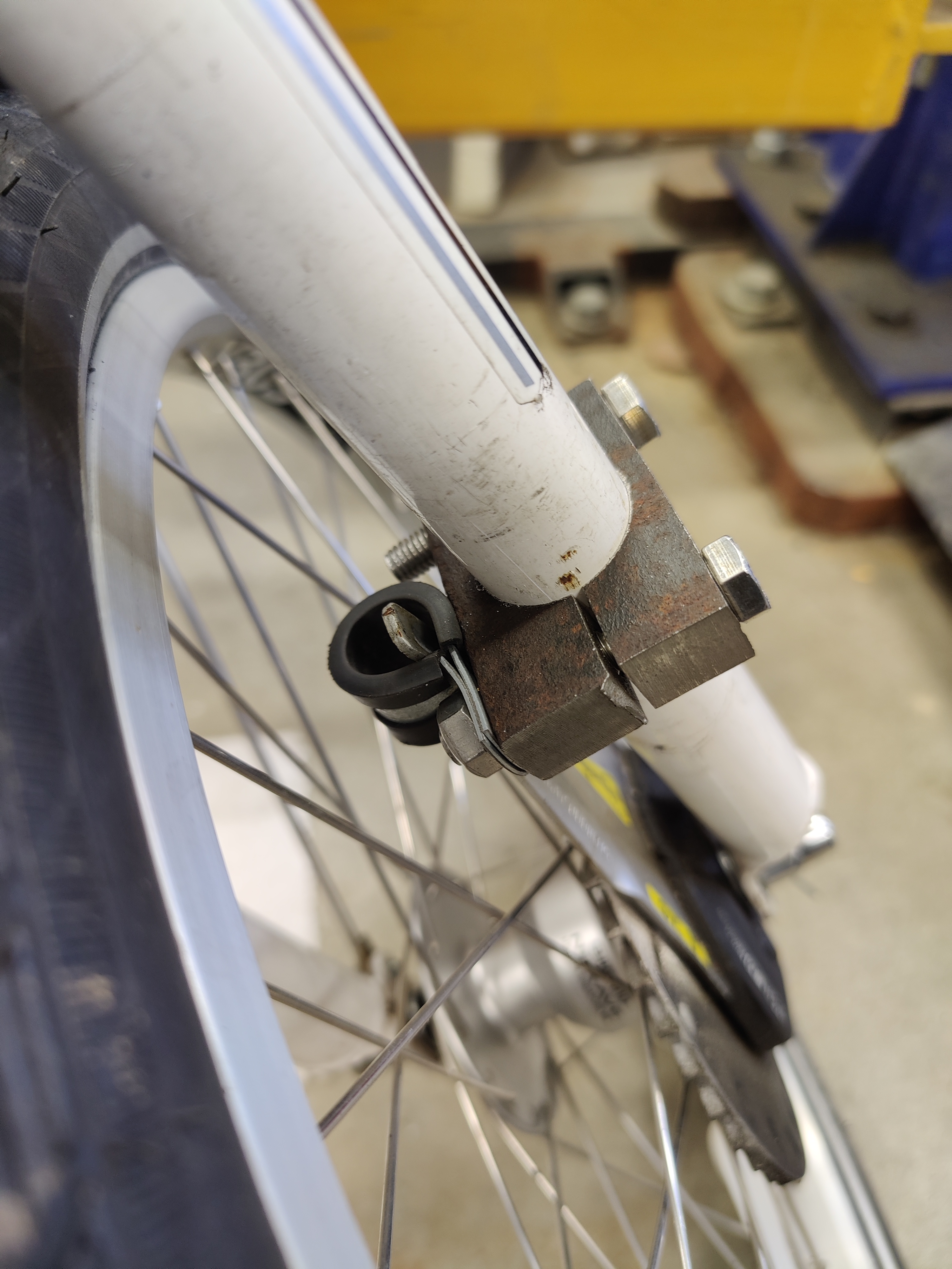 Muistelin, että olisin tehnyt vuosia sitten kiinnikkeen 28mm putkelle. Romuloota ympäri ja sieltähän se löytyi! Rullajarrun jarruraudan kiinnikeeksi passasi. Uskomatonta, että muistan tällaisia asioita vaikka ruokakauppaan lähtiessä unohdan 3 viidestä vaimon kertomasta päivittäistavarasta.