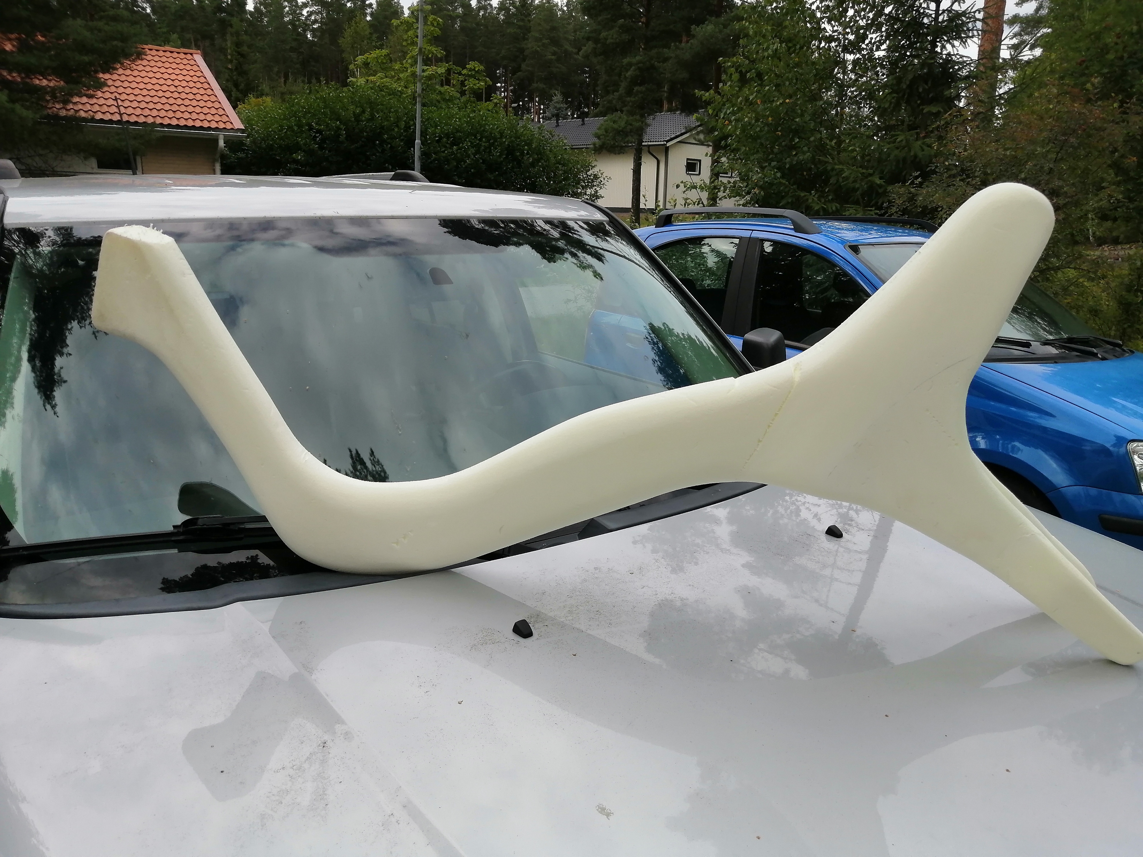 Jos tuohon haluaisi rungon sisäisen vaijerinvedon, niin sen voisi varmaan tehdä vaikka jollain sopivasti joustavalla muoviputkella/letkulla? Ura tuohon foamin kylkeen, putki sinne ja ulkomuodon silottelu (uran piilotus) "pakkelilla" eli jollain täytteellä? Ja jättää laminointivaiheessa putken päät ylipitkiksi, ja pätkäisee turhat pois vasta kun epoksit kuivuneet. Lopuksi asennusvaiheessa vaijerinkuoren pujotus putkea pitkin kohteeseen.