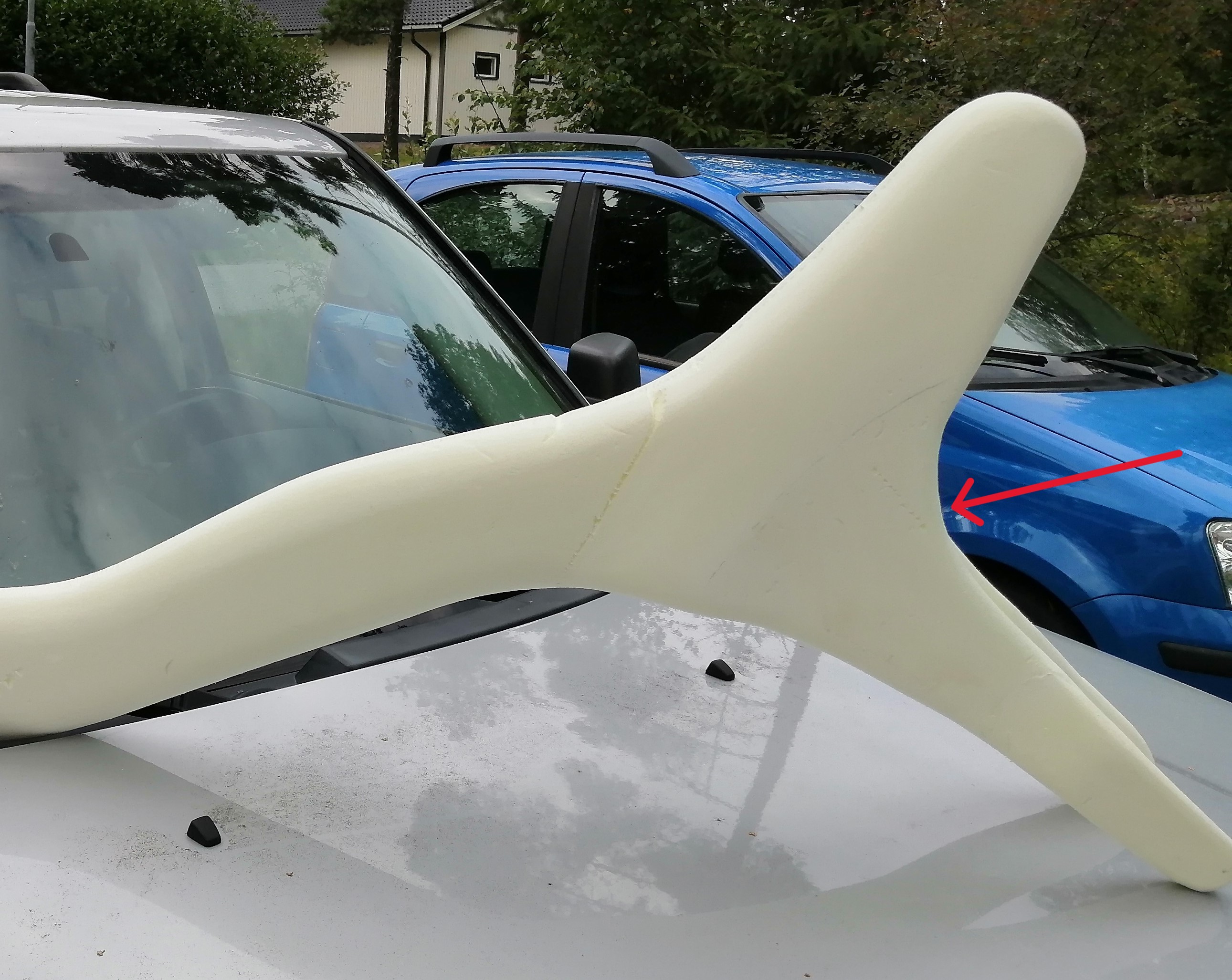 Tuota aattelin, mutta tuo 600g kuitu voi olla hankalaa saada suoraan ku sieltä töröttää putki. Vaihtoehtona vois olla metallin palanen tai magneetti kanavan tukkeena ja epoksin kuivuttua etsii tarkan kohdan magneetilla ja tekee Dremelillä reiän siihen. Multa taitaa löytyä vielä muutama 4mm pyöreä neodyymimagneetti jostain laatikon pohjalta. Mutta onko vaivan arvoista, ulkonäöllisesti varmasti. Onko ehdotuksia sopivaksi pakkeliksi? Pitää olla helposti hiottavissa, jottei foami kärsi.
