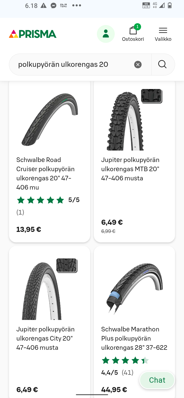 Wacky kirjoitti: 07 Kesä 2025, 23:21Noista halvoista renkaista schwalbe road cruiser tai continental ride tour ovat välttävän tasoisia. Road cruiser rullaa muistaakseen vähän paremmin.