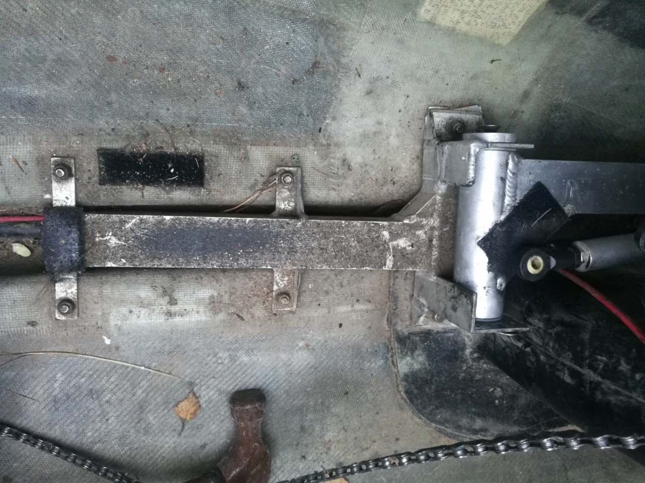 Heilurin kiinnittävän akselin päässä (kuvassa yläpäässä) olevan prikan alla oleva rajebbe on vielä epäselvä. Mihin prikan kiinnittävä ruuvi kierretään. Onko akseliputkeen hitsattu mutteri sisälle, vai meneekö tuo ruuvi läpi asti sinne hitsattuun laippalevyyn.