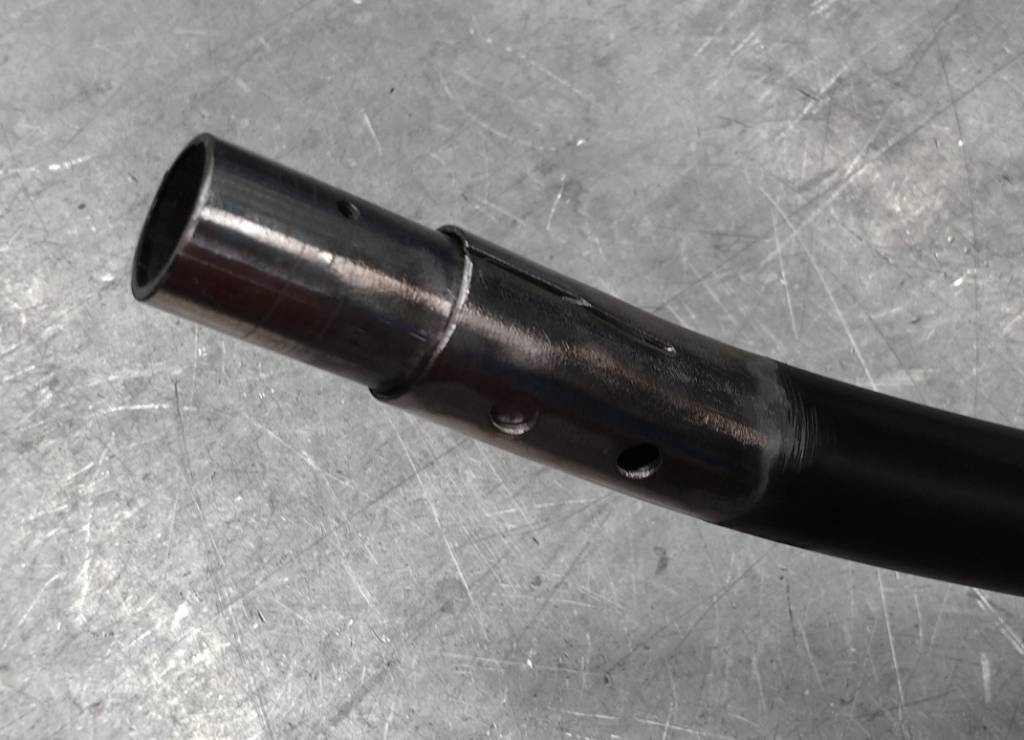 Eihän tuo tukitanko ole kummoisenkaan kuormituksen alaisena. Istuimen kuorma jakautuu kahteen osaan (F/2). Kuormitus sijoittuu noin kymmenen millin päähän (s) tukinivelestä. Jos oletetaan istuimelle vaikkapa 100 kg aiheuttama voima, tulee tuosta akselille kaksi kuormitushuippua, jotka ovat 50 kg x 10 mm suuruisia eli 5 Nm. Harmaan kolmion korkeus kuvaa taivutusmomenttia akselin eri kohdissa. Runkoputkeen siirtyvä tukivoima (vihreä nuoli) on mitätön.