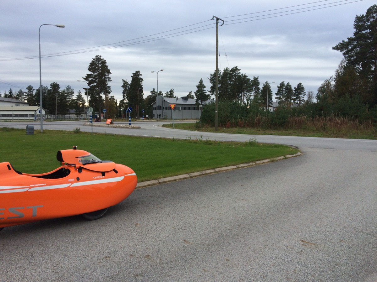Käännyin siis teollisuusalueen tieltä työpaikan pihatielle hieman liian kovaa vauhtia. Quest nousi kahdelle renkaalle, jolloin tein refleksin omaisesti korjausliikkeen. Matka jatkui reunakiven yli nurmikolle.