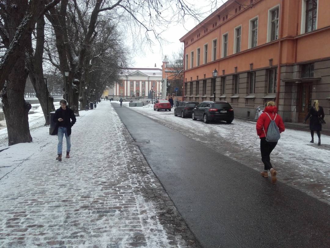 Turussa on joitain priorisoituja testireittikokeiluja tänä talvena, siis niitä hoidetaan paremmin ja lumi poistetaan niin että tarjolla on paljasta asvalttia. Ei suinkaan kaikki reitit näytä tuolta, sen sai tuta eilen aamulla ja iltapäivällä.