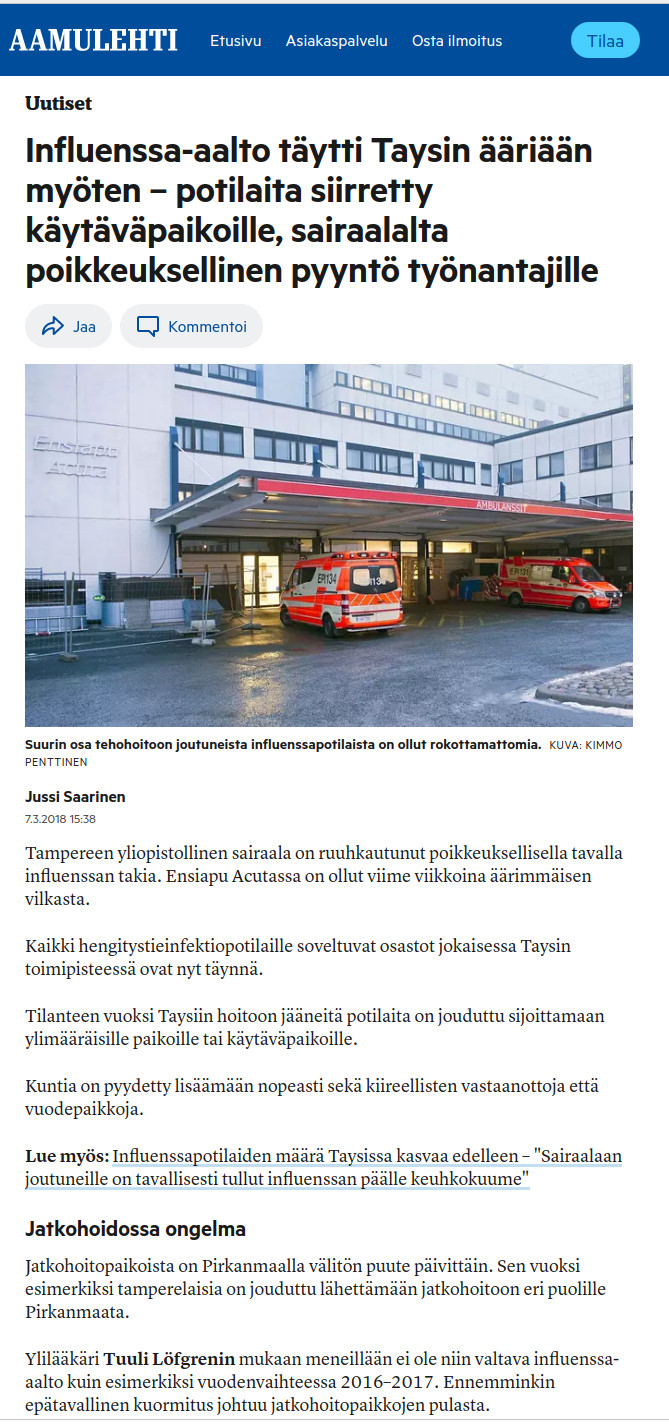 Eikä tehohoitopaikatkaan ole niin äkkiä vaarassa täyttyä. Esim tyksissä on valmius yli tuplata niiden määrä nopeasti ja valmiuslain käyttöönotto antaa mahdollisuuden liki kuusinkertaistaa määrä. Muualla lienee vastaava tilanne eli ei ne paikat ihan heti ole täyttymässä :wink: