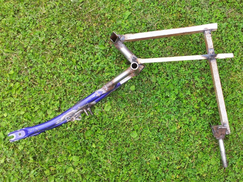 Nivelen puoliputkesta tämäkin haarukka joustaa. Jos intoa on, kokeilen hitsata poikkiputken haarukan väliin josko haarukkaputket olisivatkin riittävät :? Haluttaisi kyllä maalata tämä jo :o