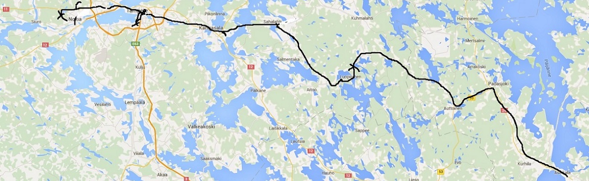 Kännykän akku pysyi hyvin latingissa, en ladannut sitä pyörästä kertaakaan eli nettisurffaus jäi edellisreissuja vähäisemmäksi. Päivän kohteita + ruokapaikkoja sillä kyllä paljon katseli ja kasvisruokapaikkojen metsästämiseen korvaamaton apu. Virta ei tainnut loppua kuin kerran Nokian kisoissa mutta silloin laturikin oli lähellä.