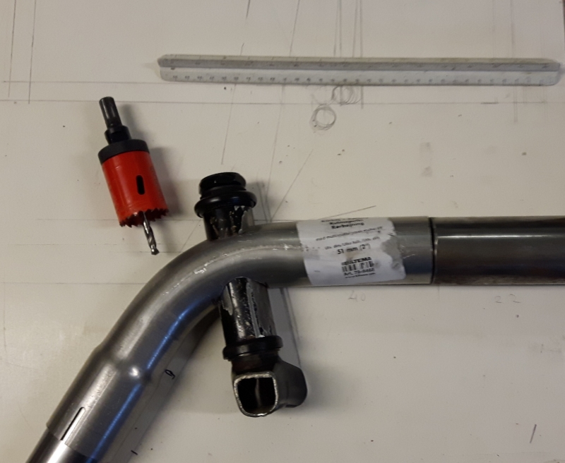 Yritin ensin porata omalla heppasella pylväsporakoneella, mutta ei onnistunut. Kiinnitin putken vain ruuvipenkkiin ja annoin mennä.