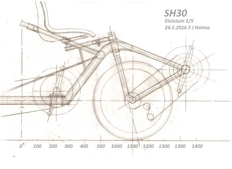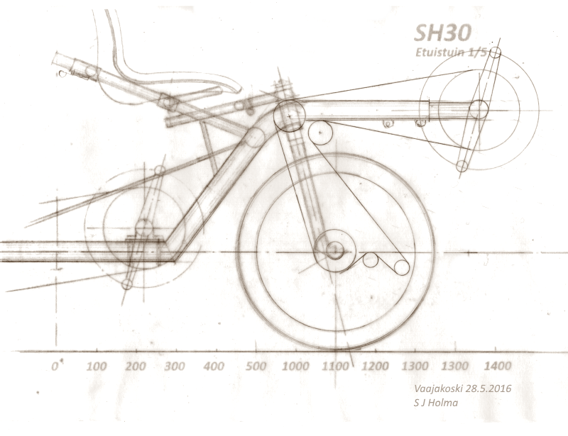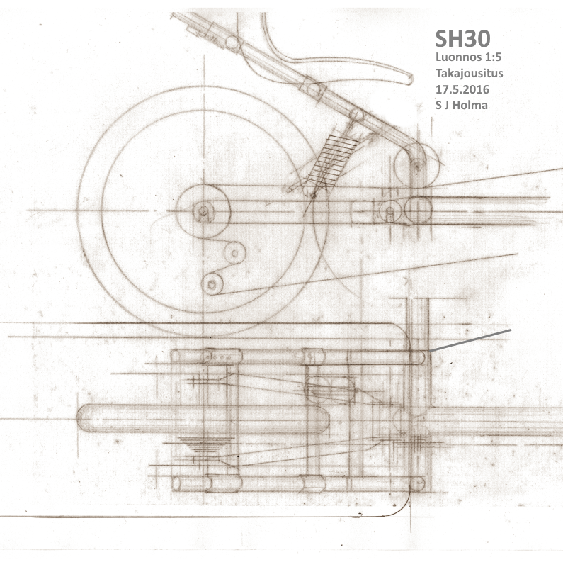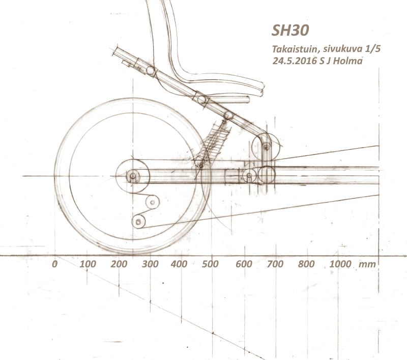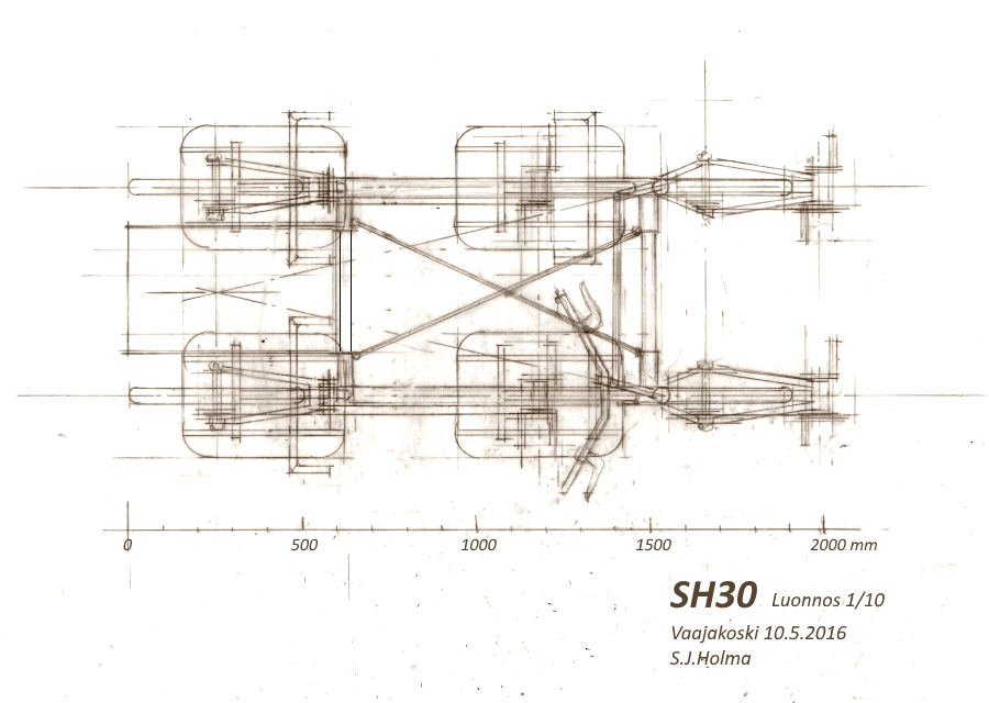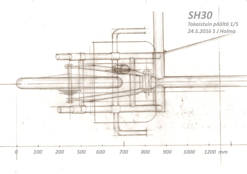 Olen kehitellyt ja piirrellyt SH30:n yksityiskohtia. Jottei homma menisi liian monimutkaiseksi ja painavaksi, ajattelin jättää pois etuistuinten jousituksen.