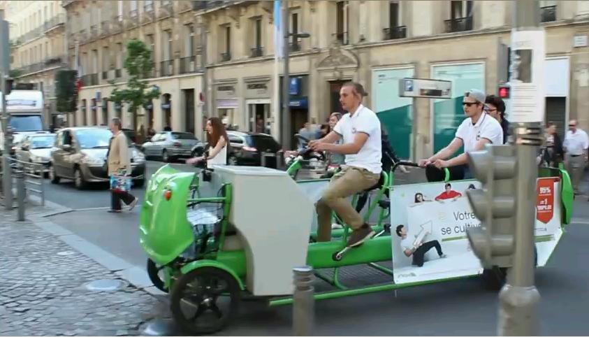 Haa, nojapyöräfoorumilla ollaan taas eturintamassa. Tuon kyljessä puhuttiin tulevaisuudesta. Mikähän noin monipaikkaisen moottoriteho ja nopeus voivat olla, jotta sillä saa ajaa polkupyörille ja jalankulkijoille tarkoitetuilla alueilla. Ehkä Ranskassa ei olekaan ajoneuvokohtaista rajoitusta teholle tai nopeudelle, vaan molemmat määräytyvät ajettavan tien mukaan, kuten mekin olemme yrittäneet markkinoida. Siinäkin suhteessa olemme samassa rintamassa ranskalaisten tulevaisuudentekijöiden kanssa.