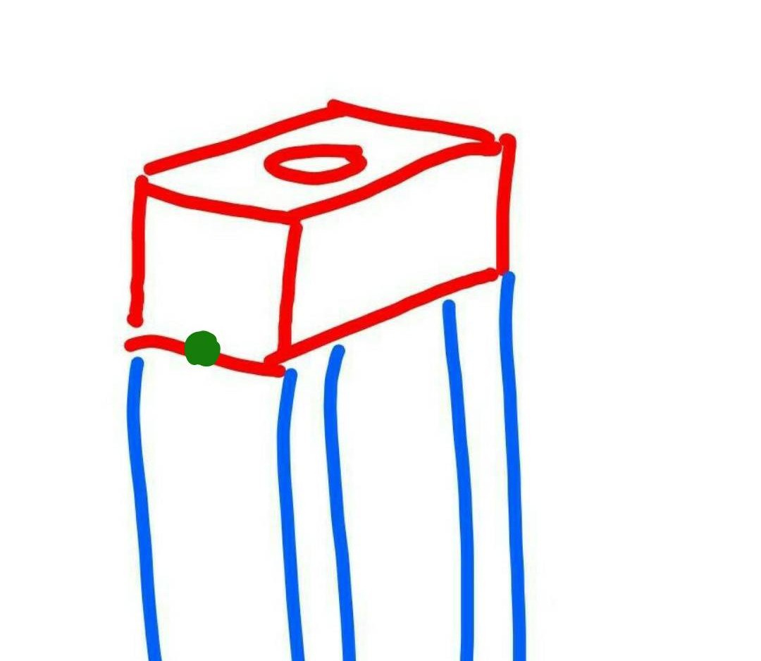 Jos yhteen putkeen tulee 450Nm, miten nuo megapascalit lasketaan? Jos olettaa, että tällainen rakenne pettäisi haarukan piikistä. Vihreä piste saranana. Etu- ja takaseinämässä on molemmissa 1,5mm x 25mm = 37,5 neliömilliä terästä, joka kestää 300Mpa, eli 11 250N. Tämän voiman varsi on n. 24mm, joten momentti on 270Nm. Tämä sekä etu- että takaseinästä, eli yhteensä 540Nm.