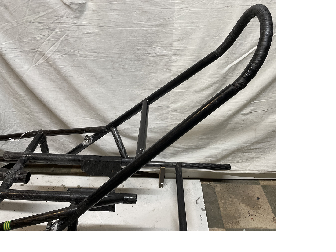 Tuosta vesikelkka-asiasta jäin miettimään vaihtoehtoja jos tästä ei kinneriä saa. Vesikelkalle ei ole juurikaan käyttöä nykyisin. Vesiputket mökillä on varustettu lämmityskaapelilla. Tein nuo takaosan vinot runkoputket yhdistävän kahvan "taivuttamalla" hiilikuituputkea. Putki pitää vielä tasoittaa ja laittaa pintaan yksi kerros twilliä. Nykyisinhän nuo koiravaljakot ovat muotia, täsätä saisi erittäin keveän reen. Laittaisi vain vanhat laskettelusukset kiinni alaputkeen esimerkiksi hydrauliputken kiinnittimillä ! Kulkisi varmaan yhtä koiraa vähemmällä - ekologista...