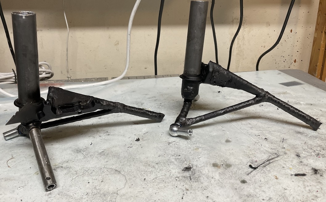 Mutta tässä vaiheessa vaikuttaa hyvältä. Etuosa saattaa toimia. Jaloilla on riittävä tila, ohjaus sopii toimimaan ja kääntösäde vaikuttaa jäävän riittävän pieneksi. Jousituskin vaikuttaa pelittävän kun sitä testaa.