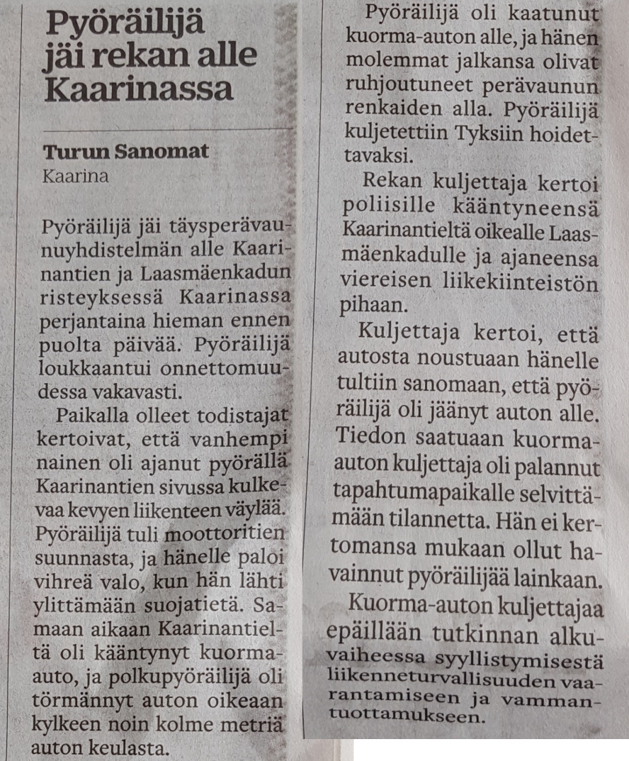 Löysin TS nappaamani kuvan tuon Kaarinan Lowriden aluksi sattuneen onnettomuuden uutisoinnista.