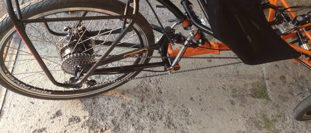 Sain ketjunkiristimen paikalleen. Myös rusahtamaan kiristäessä, mutta ei hajonnut. Noin 5 mm pitää tuoda paluupuolen ketjulinjaa rungosta poispäin. Sitten pitäisi jatkaa ketju ja laittaa se yhteen. Tehdä sähköt loppuun, niin sitten olisi ilman valoja koeajovalmius.