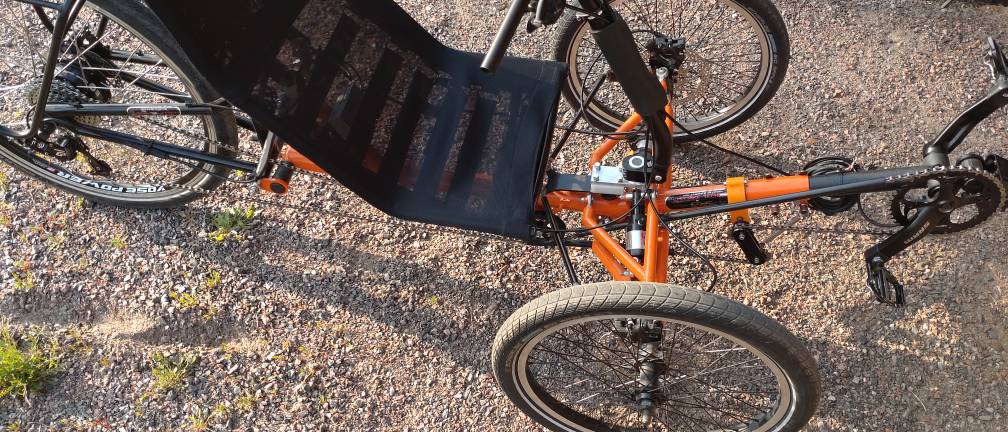 Tätä pyörää hankittaessa oli tarjolla vain tämä pyörän runko(sarja). Ota tai jätä -periaatteella. Triket (kuten myös SpecBike) taitaa pääasiassa olla 850 mm leveitä, joten eivät ne 900 mm leveimmistäkään käytettävistä ovista mahdu ongelmitta sisään, JOS ovi ei aukea ihan auki kuten meillä (julkisivun rakenteet ovat tiellä). Eivätkä sinunkaan terassin ovesta kulje kuin ehkä kantamalla poikittain. Leveyttä on tullut tähän pyörään alkuperäisestä lisää, koska eturipustukset on tehty kokonaan uusiksi kantavuuden parantamiseksi. Nykyisessä mallissa kantavuus on parempi johtuen varmaan tämän minun rungon heikkouksien löytymisestä.