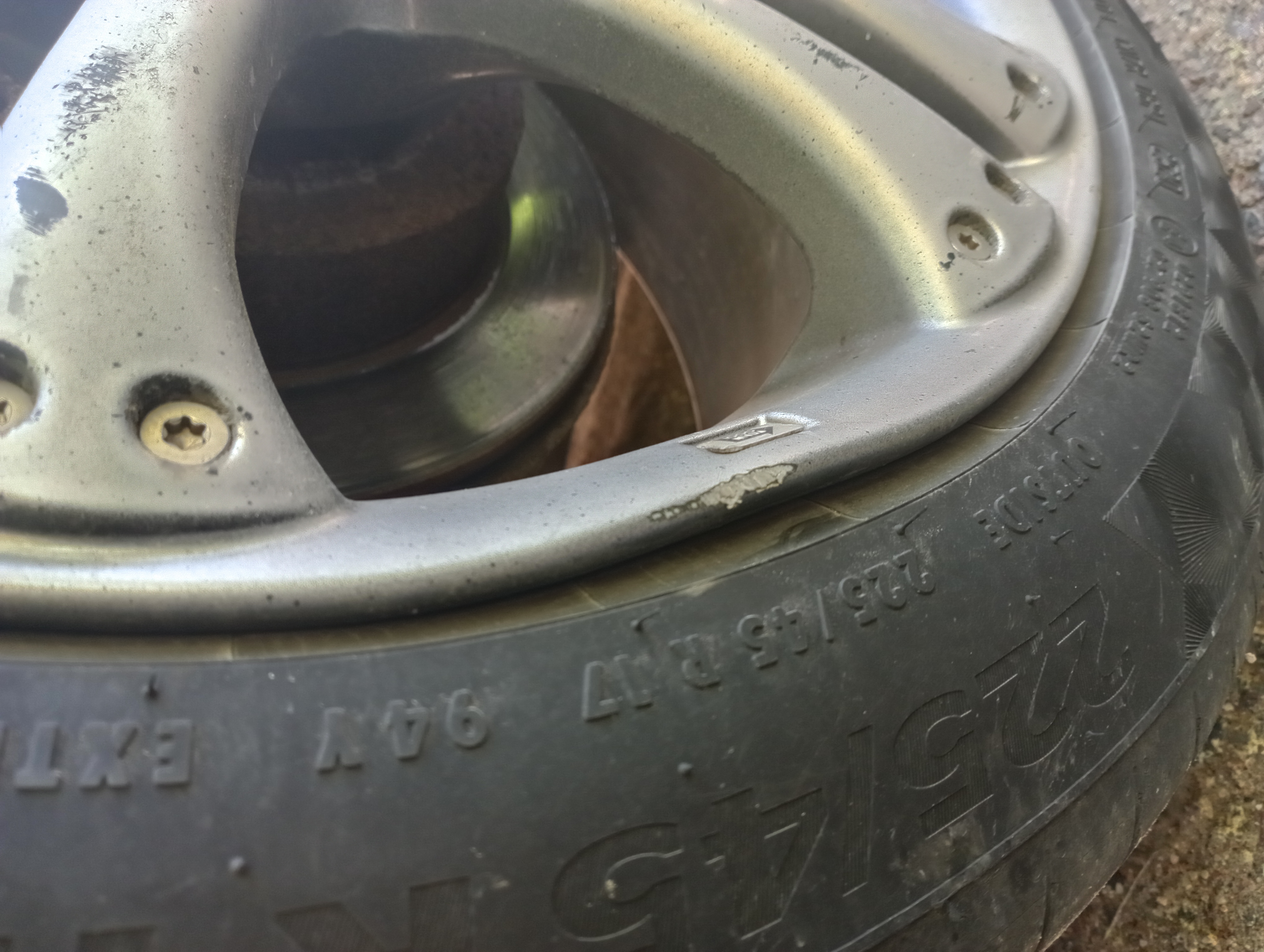 Vaimon auton yhessä alumiini vanteen reuna vääntyny. Ollu muistaakseni kauan, nyt alkanu vuotaa - oletus, ett tuosta vanteen ja renkaan välistä.
