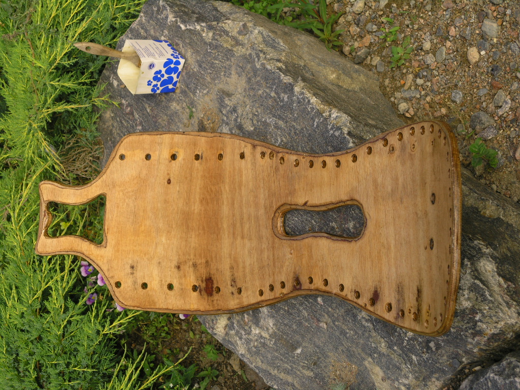 Penkkiä muotoilin ja tein reikiä, jos noihin sais pehmusteet jotenkin viritettyä. Pari kerrosta lantrattua venelakkaa vedettynä.