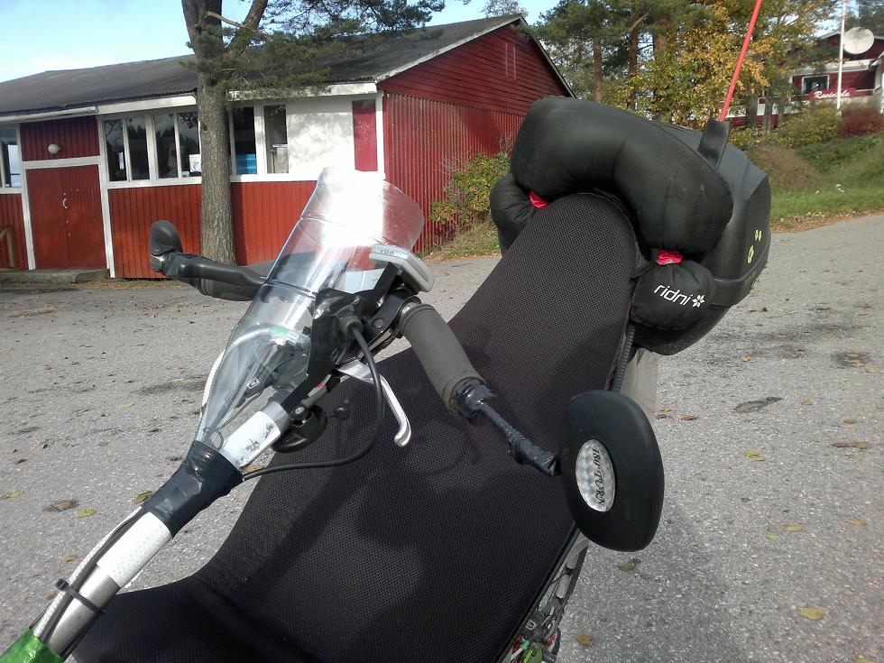 Pvc-kalvot ei lepata ajaessa, ne on pääosin nippusiteellä kiinni tarakassa ja yläreuna on vahvasti teipattu penkkiin ja poksiin, ajansaatossa tuuli on painanut ne vähän aalloille eli kiinnitys ei ole ollut täysin kireä ja esim. pullotelineistä johtuen täysin suoraksi ei saakkaan, mutta tuo on jäykkähköä materiaalia ja ei lepata, jäykkäperäiseen kiinnittäminen olisi helpompaa ja kavoista saisi peittävämmät. Hyötyä on, kokeiluversio mansikkamaamuoveilla parannus testiajossa oli keskinopeuden osalta 2,4% (huonommissa olosuhteissa) http://www.nojapyorafoorumi.fi/viewtopi ... =90#p23360 nyt kiinniolevat kalvot on peittävämmät ja tässä viimeisessä virityksessä teippasin penkin alta ylimääräiset reiät katteesta umpeen jotta ilman saisi kivemmin kulkemaan. Nyt kun tuo perä on iskarimuutoksessa vähän noussut niin uudet peittävämmät kalvot pitäisi tehdä, onneksi sitä tuli ostettu 4 neliötä kerralla. Mutta väitän, että näistä hyöty on isompi kuin tuo 2,4% ja mitä kovempaa mennään sen enemmän niistä on hyötyä.