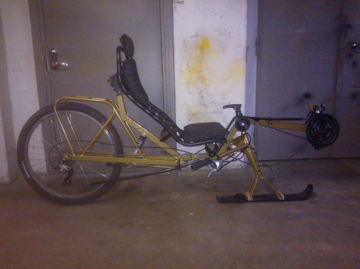 No viimein lähdin kokeilemaan tuossa pihassa miten homma toimii, ja kyllä täytyy sanoa, että Jukka on oikeassa. Uritettua mini-suksea ei pehmeässä lumessa juuri pystynyt kääntämään ainakaan hitaassa vauhdissa, eikä pystyssä pysymisestä tullut mitään. Eri juttu ehkä olisi tiiviimmällä lumella. Etusuksen pitäisi varmaan olla erilainen. Hiekoitetuilla teillä SH24:n kuljettaminen on hankalaa, kun etupäätä pitää koko ajan kannatella. Tosin etusuksen voi aika nopsaan vaihtaa pyöräksi.