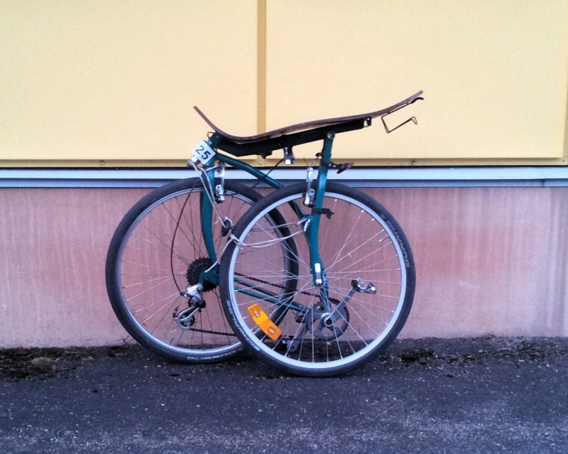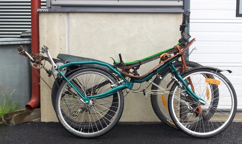 Kun jatkoin runkoa sentillä pyörä muuttui hieman vakaammaksi. Ei paljoa, mutta sen verran kuitenkin etti tarvi epäillä muutosta. Tästä on jäänyt itämään ajatus paranisiko pyörä, jos penkki olisi taaempana? Muutosta en arvaa tehdä, jos pyörä meneekin pilalle :( Ehkä pitää tehdä toinen takarunko pätkäkammille, niin voi verrata.