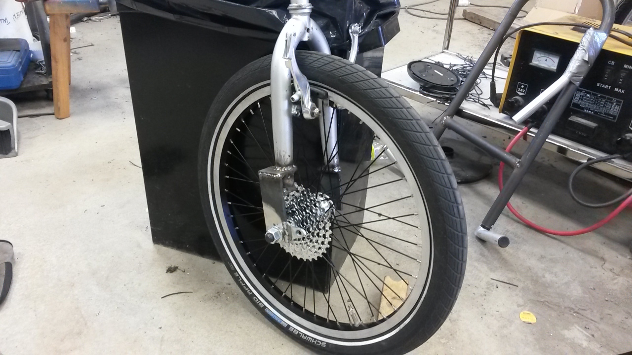 Takaperin käännetyssä haarukassa olisi minusta järkeä: Akseliväli lyhenis, pito paranis ja ketjun väistö toteutuis luonnostaan vakiohaarukalla.
