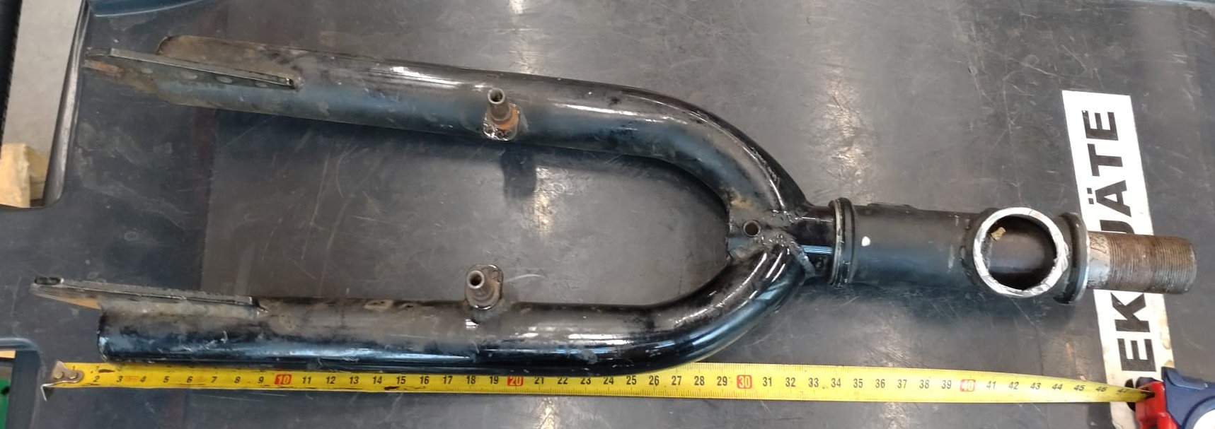 Huomenna pitäisi alkaa rungon tekeminen. Suunnittelussa on näemmä virhe. Etunapa tulee tietysti etuhaarukan etupuolelle, koska etuhaarukassa on taivutus. Miten paljon se muuttaa ohjausta?