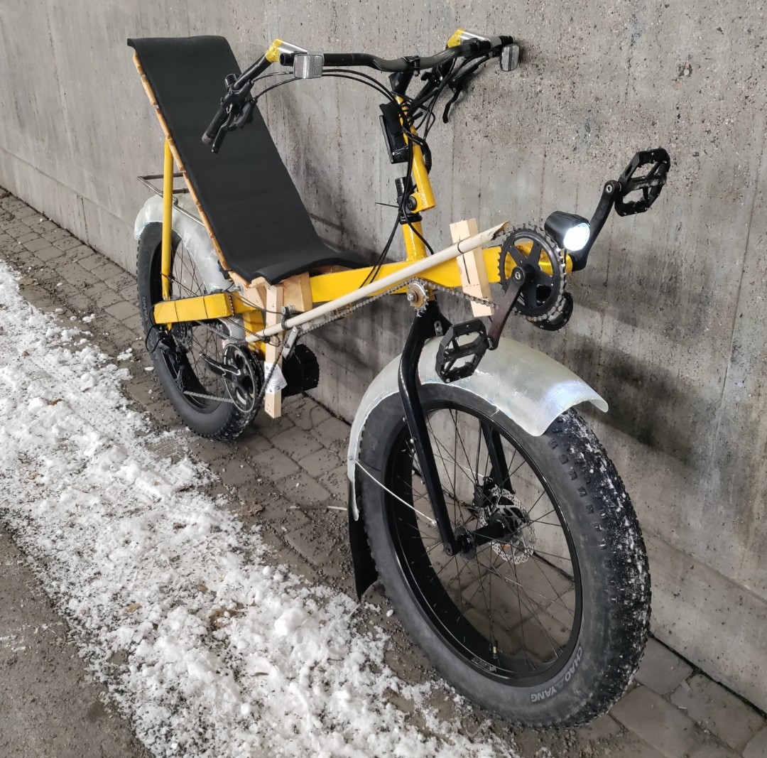 Alkaa olla valmista. Kuraläppä vielä taakse ja tarakan viimeistelyä... laitoin etuketjuksi kapeamman 7-vaihteisen, joka juuri vielä sopi näille 1-vaihteisille rattaille, ja se ratkaisi ketjun tippumisen. Noin 10km testilenkin ajoin.