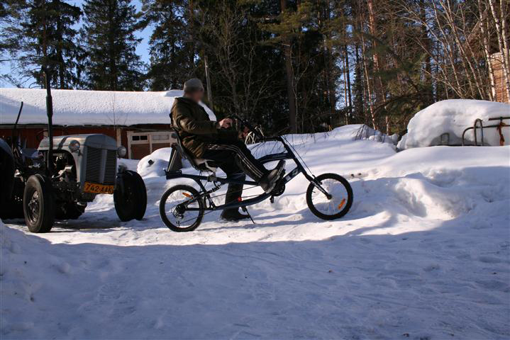 Tänään tuli Savenmaalta lähetys ja sen mukana "Matkaaja". Se on ensimmäinen nojapyöräni. Oli matala kynnys ostaa, kun maksoi vain 300e+lähetyskulut.