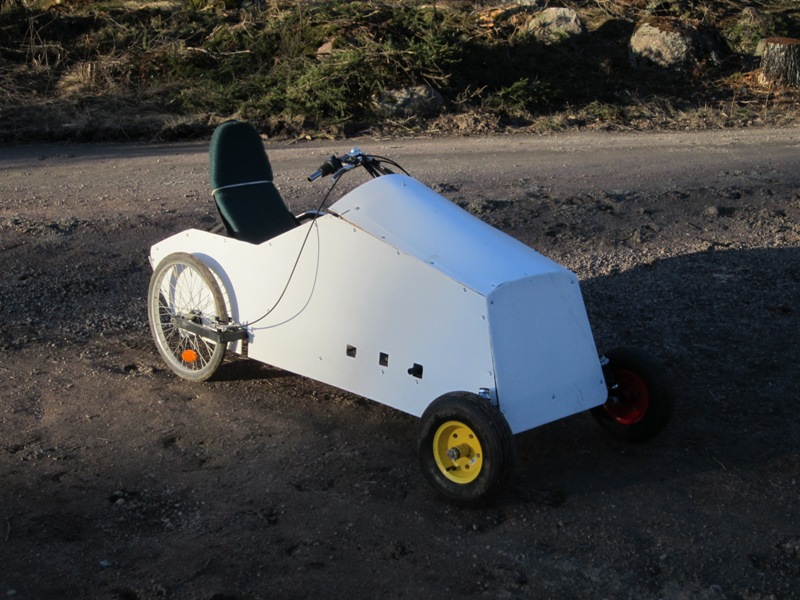 Muutin kinnerisuunnitelmaa siten että se täyttää Pedalcar.info mukaiset polkuautokisojen säännöt, eli on nelipyöräinen. Samalla teen siitä sellaisen että se voidaan säätää nuorisolle sopivaksi. Täytyy siis tehdä sekä polkimet että penkki säädettäviksi.
