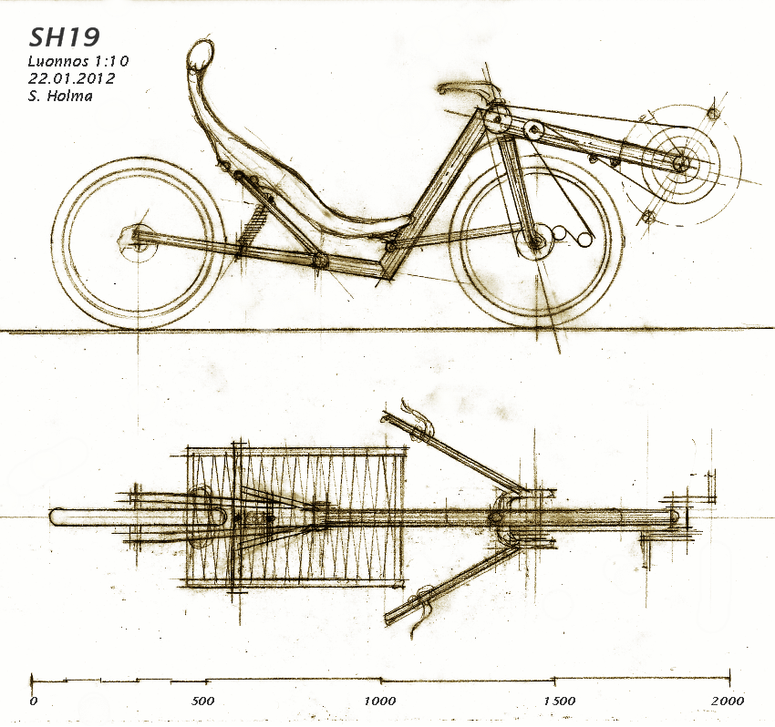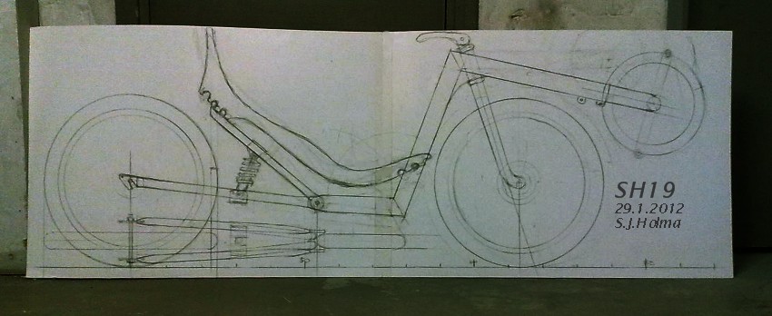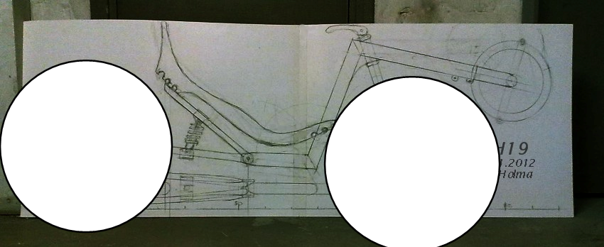Suosittelen kaikille uuden projektin edetessä suunnitelman piirtämistä pahville 1:1 mittakaavaan. Siitä näkee heti, missä mennään, ja siihen voi suoraan sijoittaa jo hankitut osat ym. Tämän minä sanon 17 nojapyörän rakentajan kokemuksella. :mrgreen: