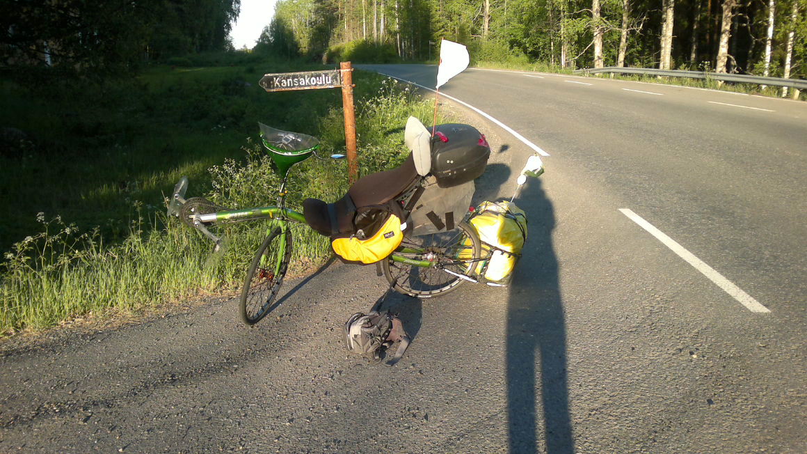 Eli yhteensä n. 1845 km johon varmasti heti kättelyssä voi 5% lisätä kun matkat on mitattu googleen piirretystä viivasta + tietysti harhaan ajot ja muut mutkittelut, villi veikkaus, että 2000 km menee kärryn kanssa rikki ja välipäivinä kevyellä pyörällä vähän lisää.