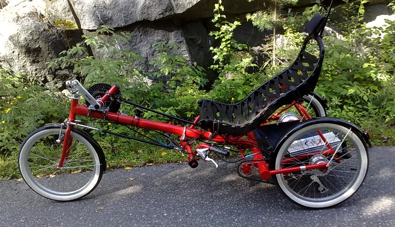 Itte tein tuohon kolmipyörään kukkatukikepeistä jotka on muovipäällysteisiä metalliputkia, kahdella putkella mutt yhelläkin pitäs toimia.